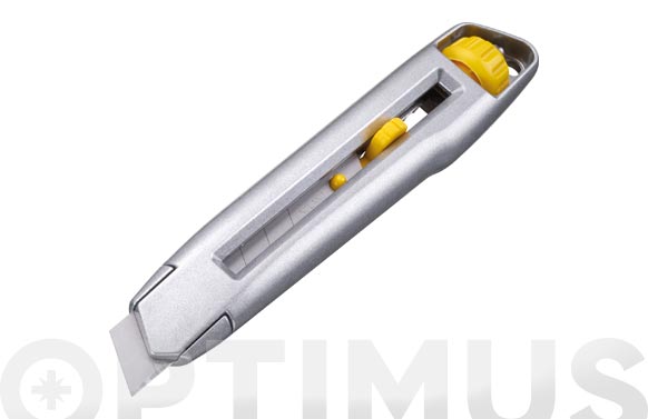 Cúter de cos metàl·lic molt resistent. Forma anatòmica antilliscant. Botó d'empenyiment i bloqueig eficaç de la fulla mitjançant roda amb osca. Sistema de bloqueig de punta per a més seguretat durant el tall. Bloqueig massiu de les rodes de la fulla per a talls dús intensiu. Resistent a dissolvents.