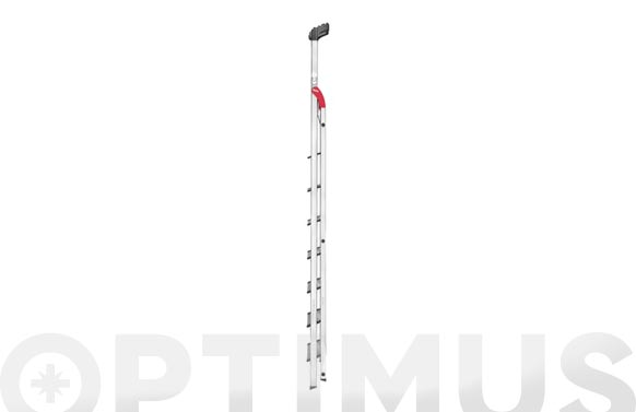 Escala d'alumini amb esglaons arrodonits XXL de 13 cm. Plataforma i esglaons amb ranures antilliscants i material doblegat sota per evitar talls. Safata multifuncional per a eines i petits objectes, amb ganxo per a cub i pinça per a cable. Unió travesser esglaó robust amb reblat high-tech. Cables d´acer de reforç. Resisteix fins a 150 kg de càrrega.